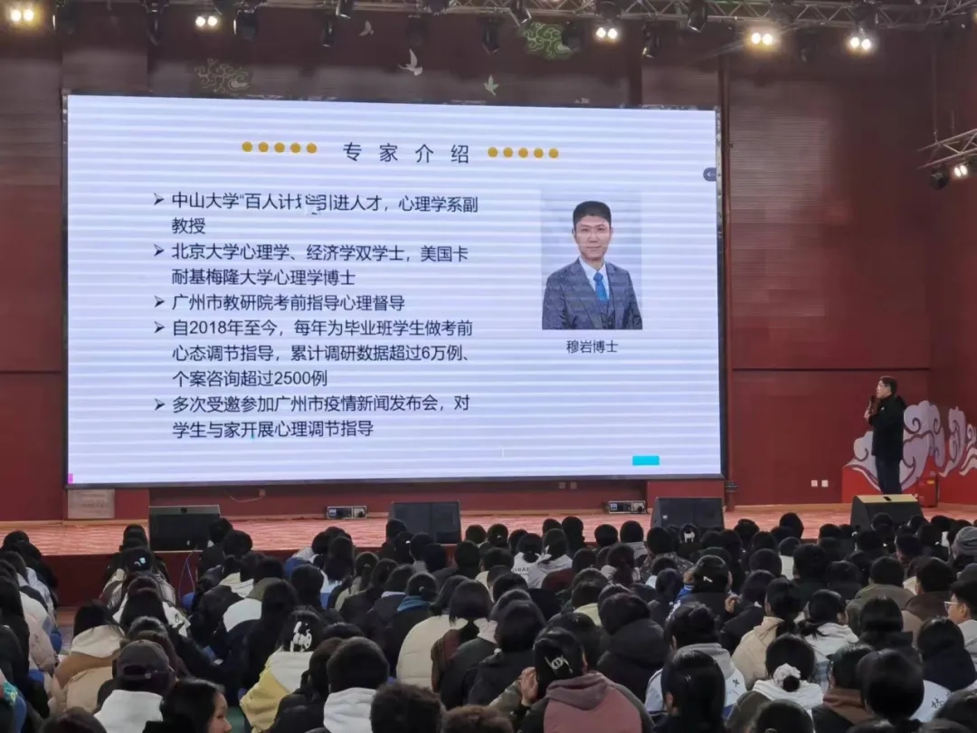 穆岩老师在讲座中介绍了焦虑、懈怠等心态波动如何破坏考场发挥水平,并提供了一系列科学应对建议,包括:如何调节情绪保持冷静专注、如何优化思维效率促进语文、数学等跨学科协同、如何通过树立符合国家战略的大志向来激励自我等。