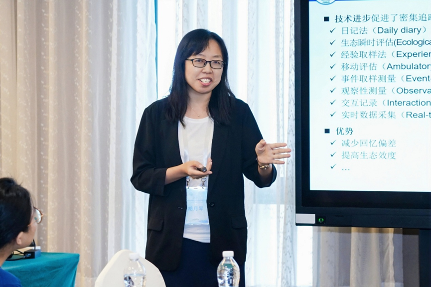 在主题报告环节,北京师范大学胡月琴教授报告了《密集追踪数据在测量与统计建模中的挑战与应对》。她从密集追踪数据在心理/行为测量中的信效度问题出发,指出该方法能有效捕捉个体内动态变化与个体间差异,但在“时间不对齐”“时间尺度不匹配”等复杂条件下的建模仍面临许多挑战,并分享了可能的应对方法。她还指出运用密集追踪法探究变量间的动态双向关系是未来重要的发展方向。