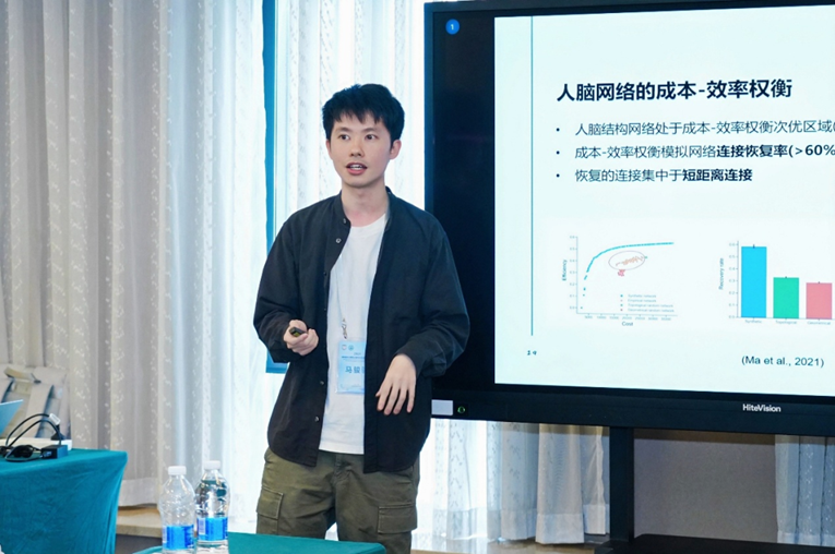 香港浸会大学马骏骥博士以《人脑网络的形成机制及其在精神疾病中的异常》为题,介绍了复杂网络分析、成本-效率权衡模型与多目标演化算法在揭示脑网络组织原则中的应用。他提出了人脑结构网络成本-整合-分离效率的权衡模型,并以此模型为基础揭示了人脑网络形成机制与精神疾病中的异常表现间的关联,为了解不同精神疾病神经病理基础的共性和特异性提供了新视角,为跨疾病诊断提供了底层神经生理维度基础。
