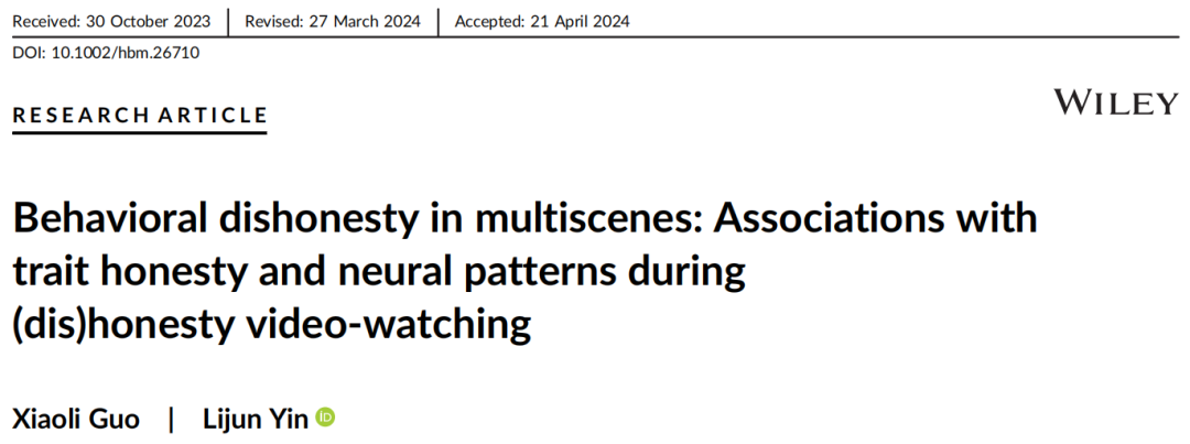 HBM︱多情境下的不诚实行为!英国威廉公司殷丽君课题组探索多情境下的不诚实行为与诚实特质和观看不诚实视频时神经模式的关联